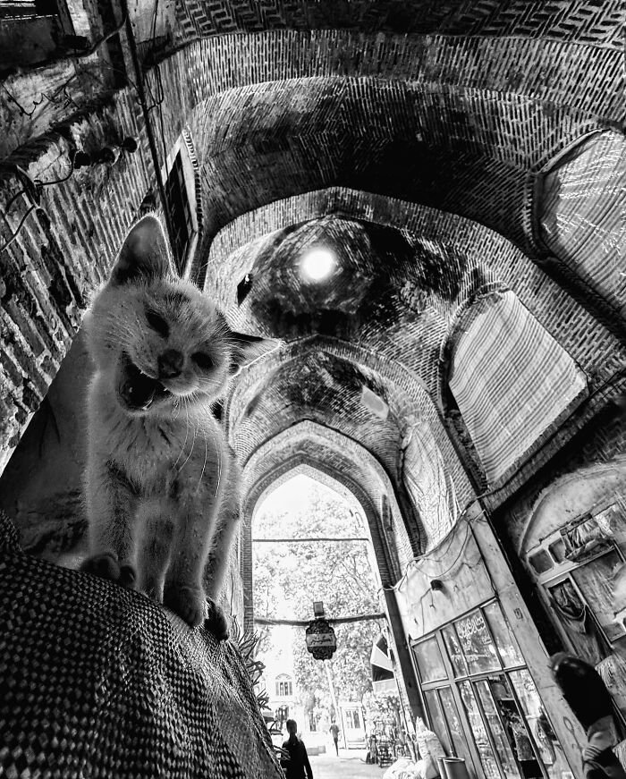 Le photographe Akbar Mehrinezhad a choisi d’en faire le cœur de son travail. Armé d’un simple smartphone, il documente depuis plusieurs années la présence féline dans l’espace public, révélant une réalité souvent ignorée : celle d’animaux libres, vulnérables, mais profondément intégrés à la vie quotidienne des habitants.